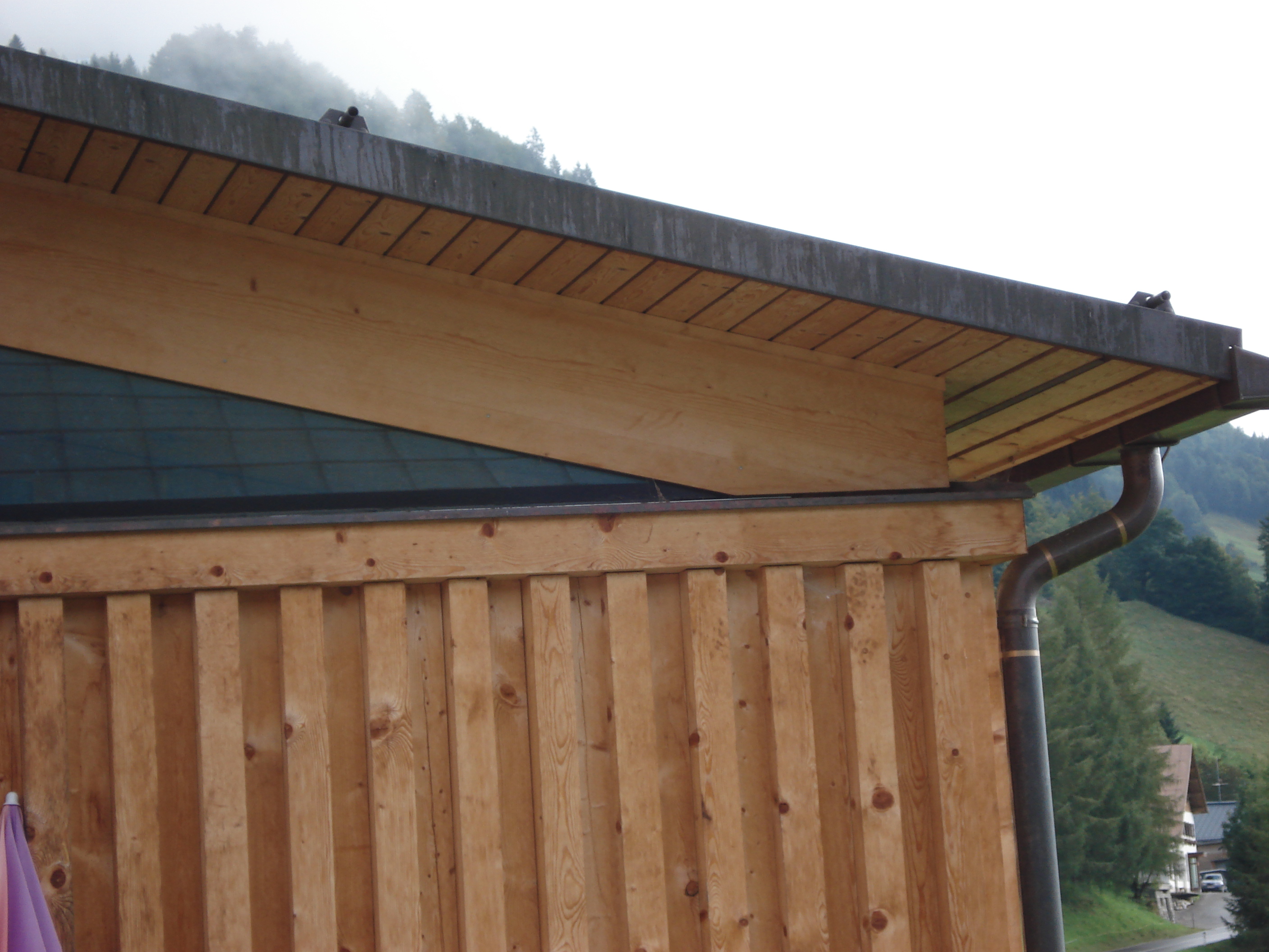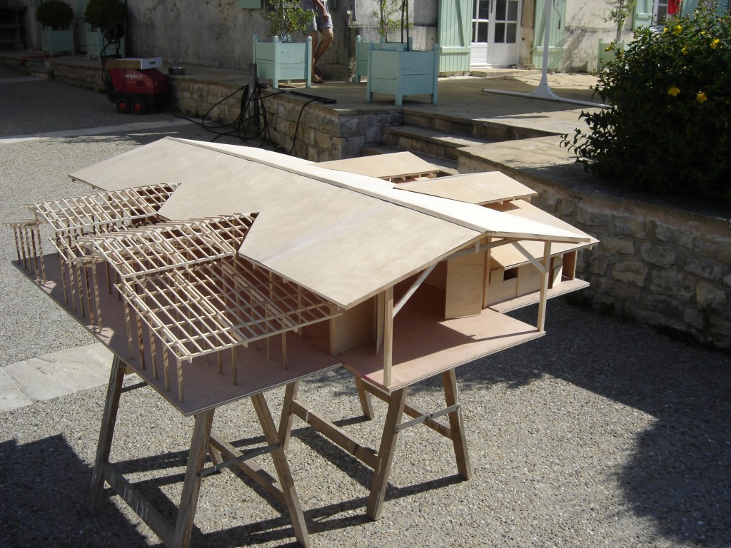 Une partie de la couverture a été conservée, et une surélévation partielle permet d’avoir une chambre de plus et une petite salle d’eau. La chambre créée donne sur le jardin et bénéficie d’une terrasse. Cette terrasse sert aussi de préau, créant ainsi un espace couvert pour profiter du jardin par tous temps.