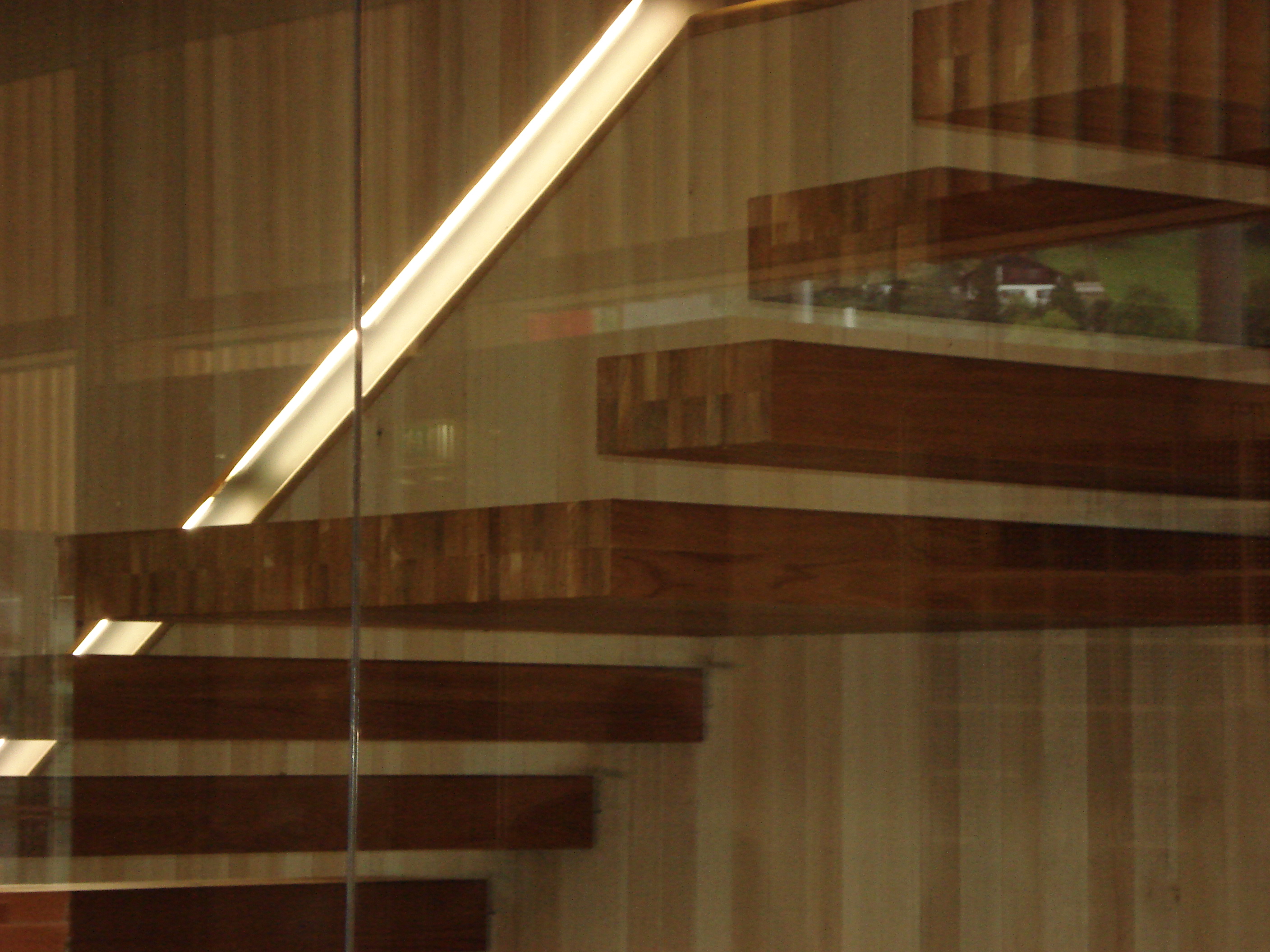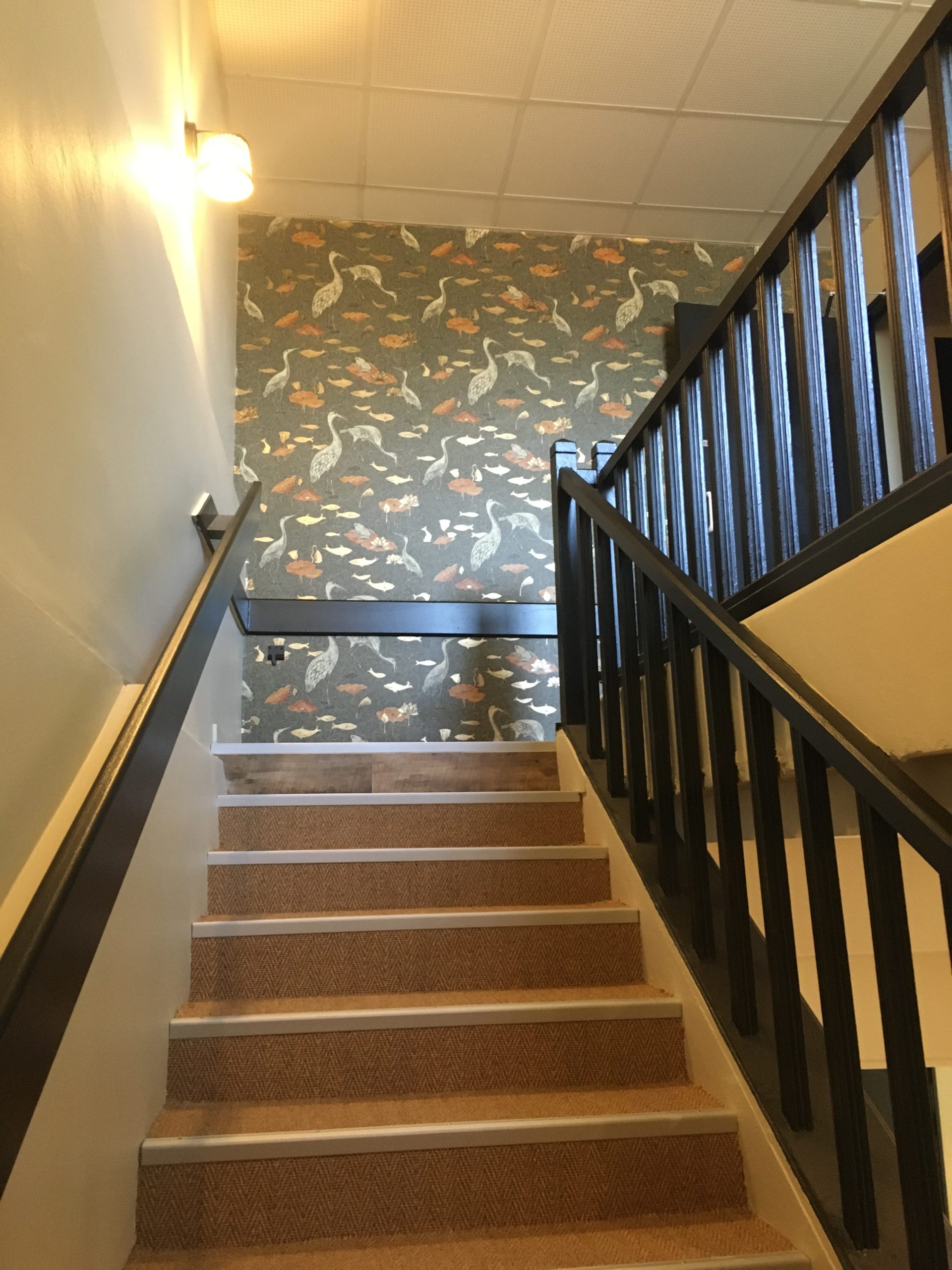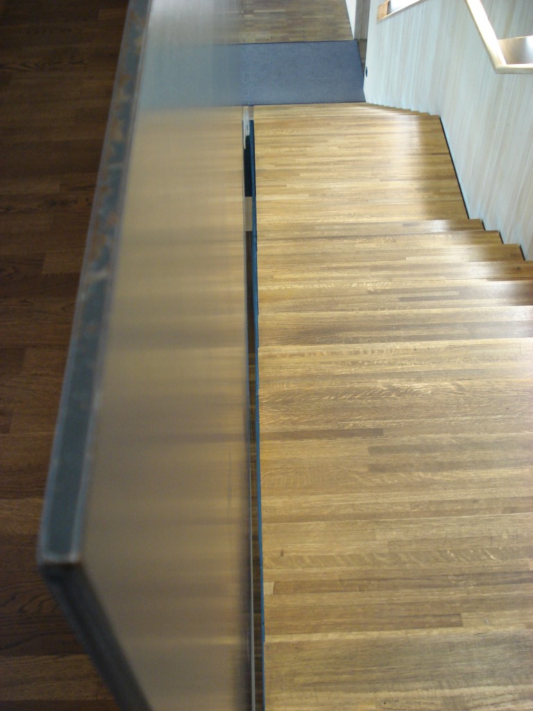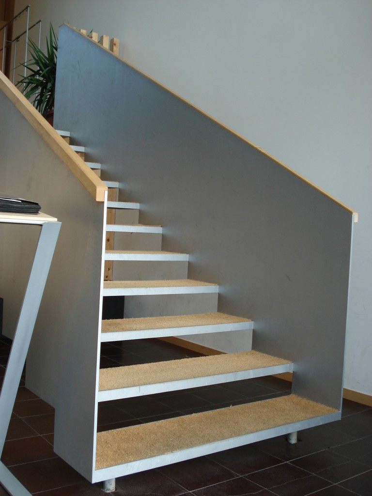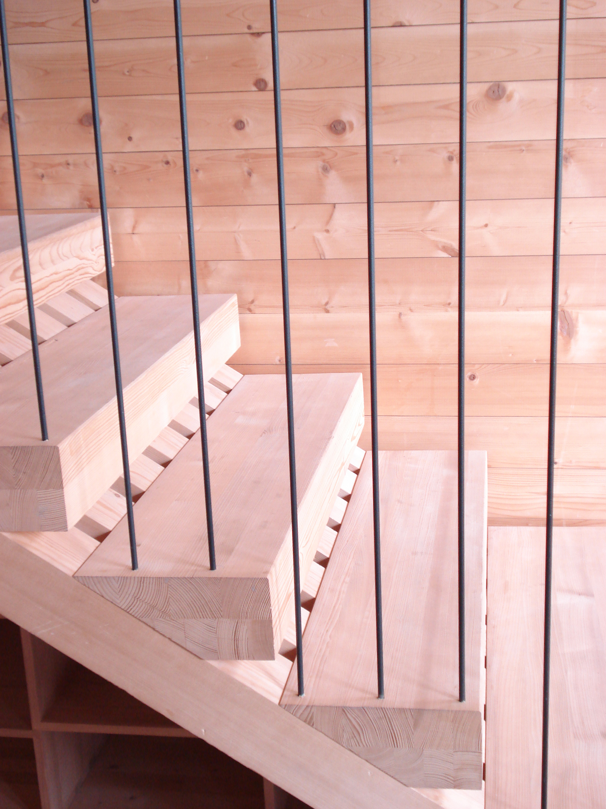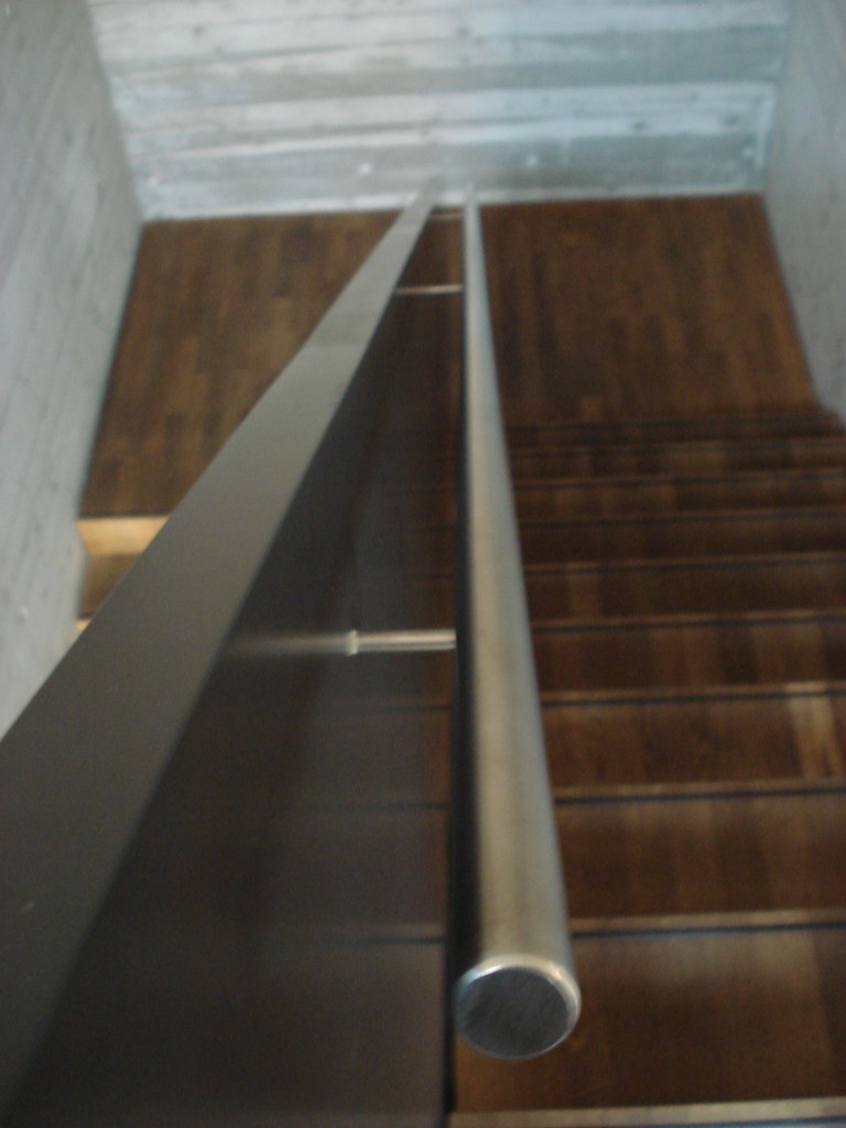 L’escalier fut un sujet de débats….le conserver? simplement le déplacer? en poser un nouveau, avec une nouvelle implantation?? Et bien pour gagner un peu d’espace utile dans le séjour ( sa forme quasi carrée ne rend pas l’espace facile à meubler, et l’escalier existant était peut-être un peu envahissant…), cet escalier a été changé et déplacé:
