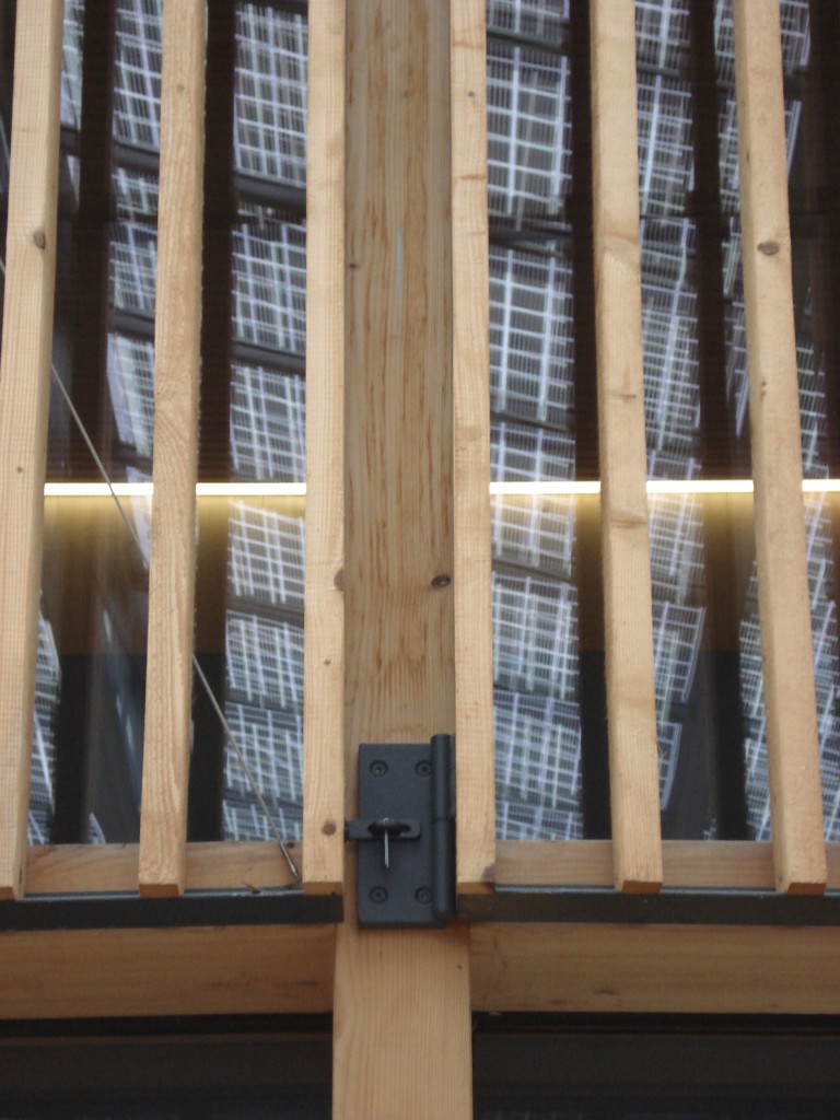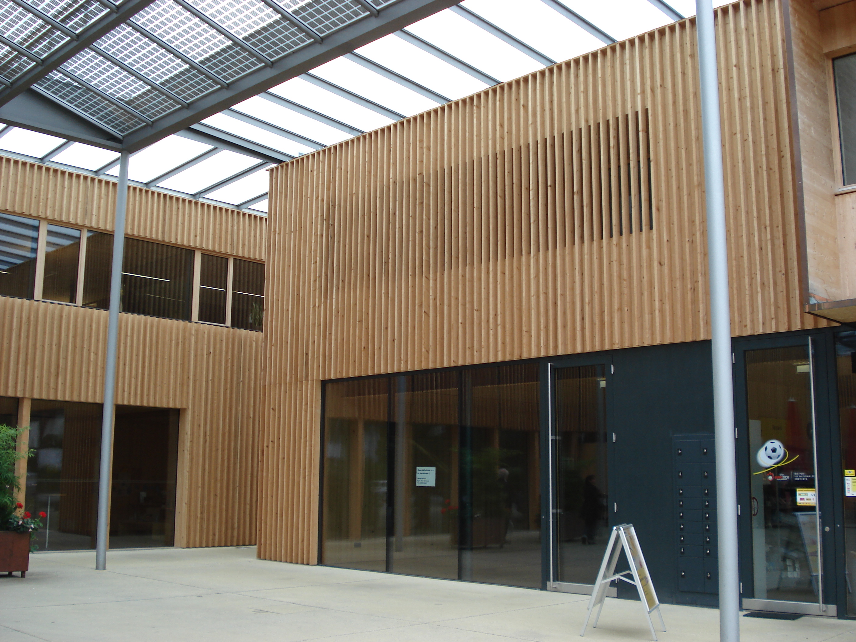 Voici la façade sur rue, ci-dessus, avant les travaux, et ci-dessous, après. L’agrandissement reçoit un bardage bois vertical, à claire voie.