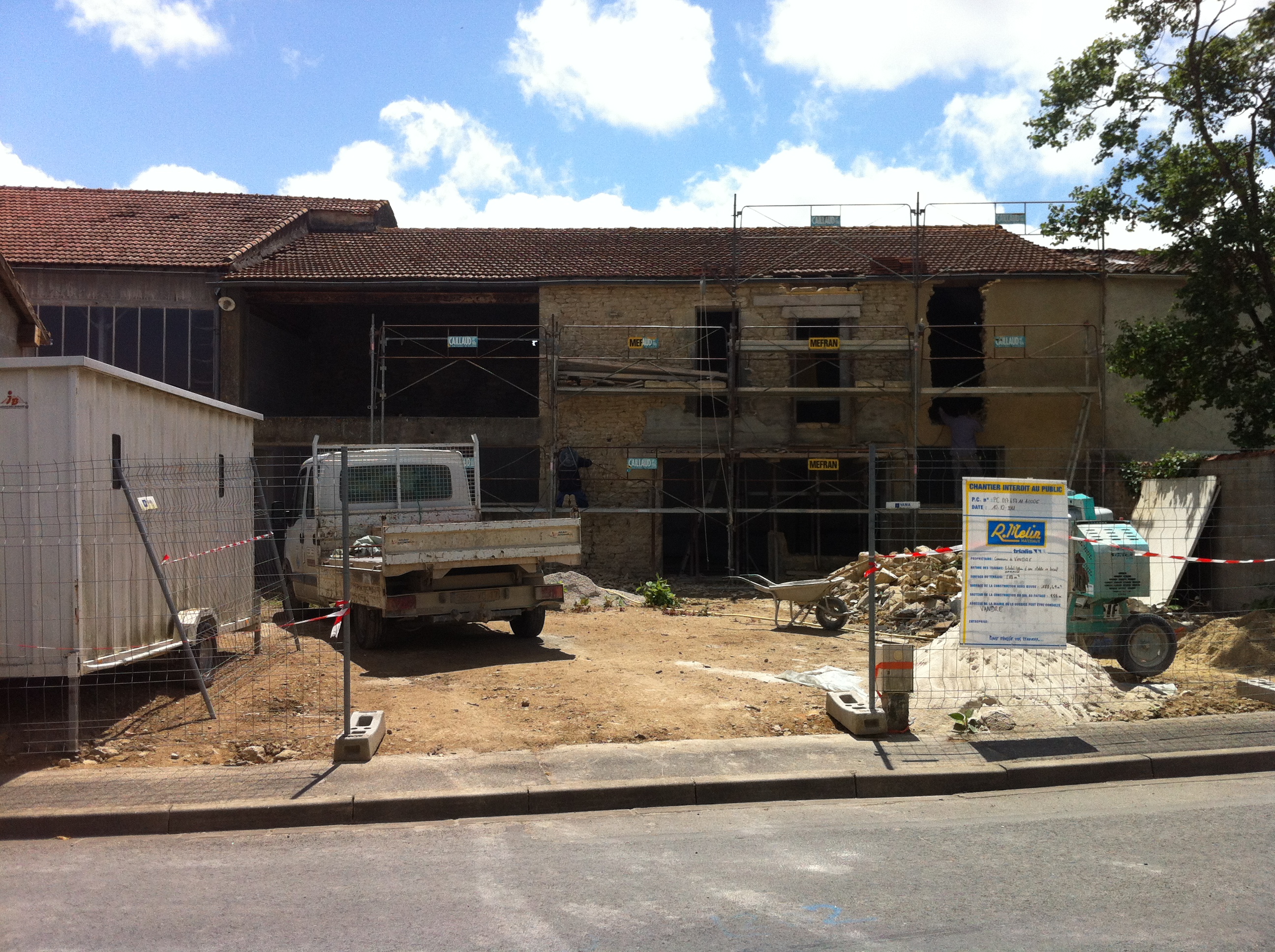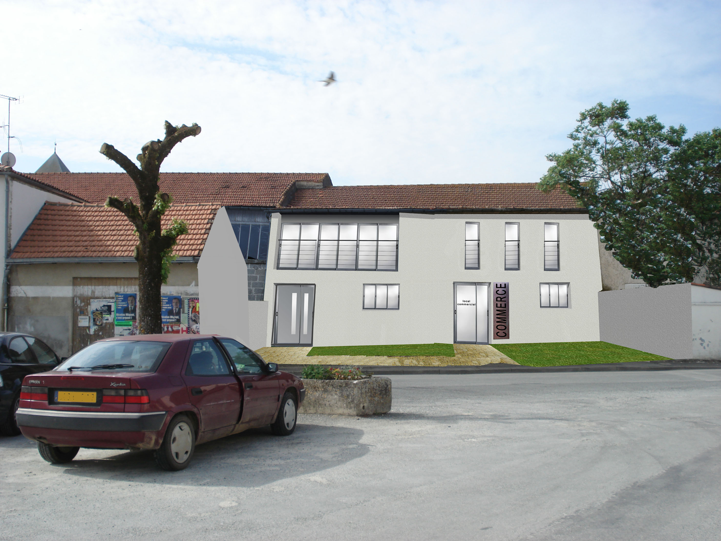La Commune, Maître d’Ouvrage, souhaitait réutiliser un des bâtiments communaux en sa possession afin de créer un local commercial. En premier lieu le Conseil voulait restructurer les volumes en bordure de rue, ces derniers n’offrant que peu de surface, le choix s’est porté sur le bâtiment en fond de parcelle (qui d’ailleurs se serait retrouvé enclavé dans la première idée).