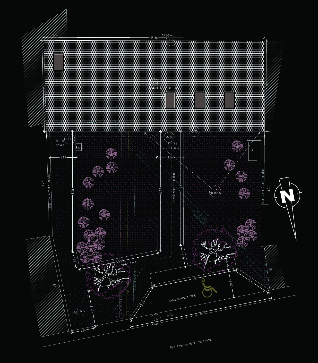 La place centrale actuelle est en cours de restructuration, l’espace extérieur de ce projet vient donc dans la continuité naturelle de cet aménagement urbain.