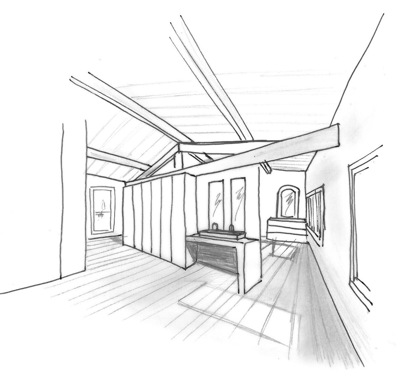 Les espaces intérieurs ont été reliés en démolissant les murs, créant ainsi de grands volumes adaptés à la fonction de ce lieu.