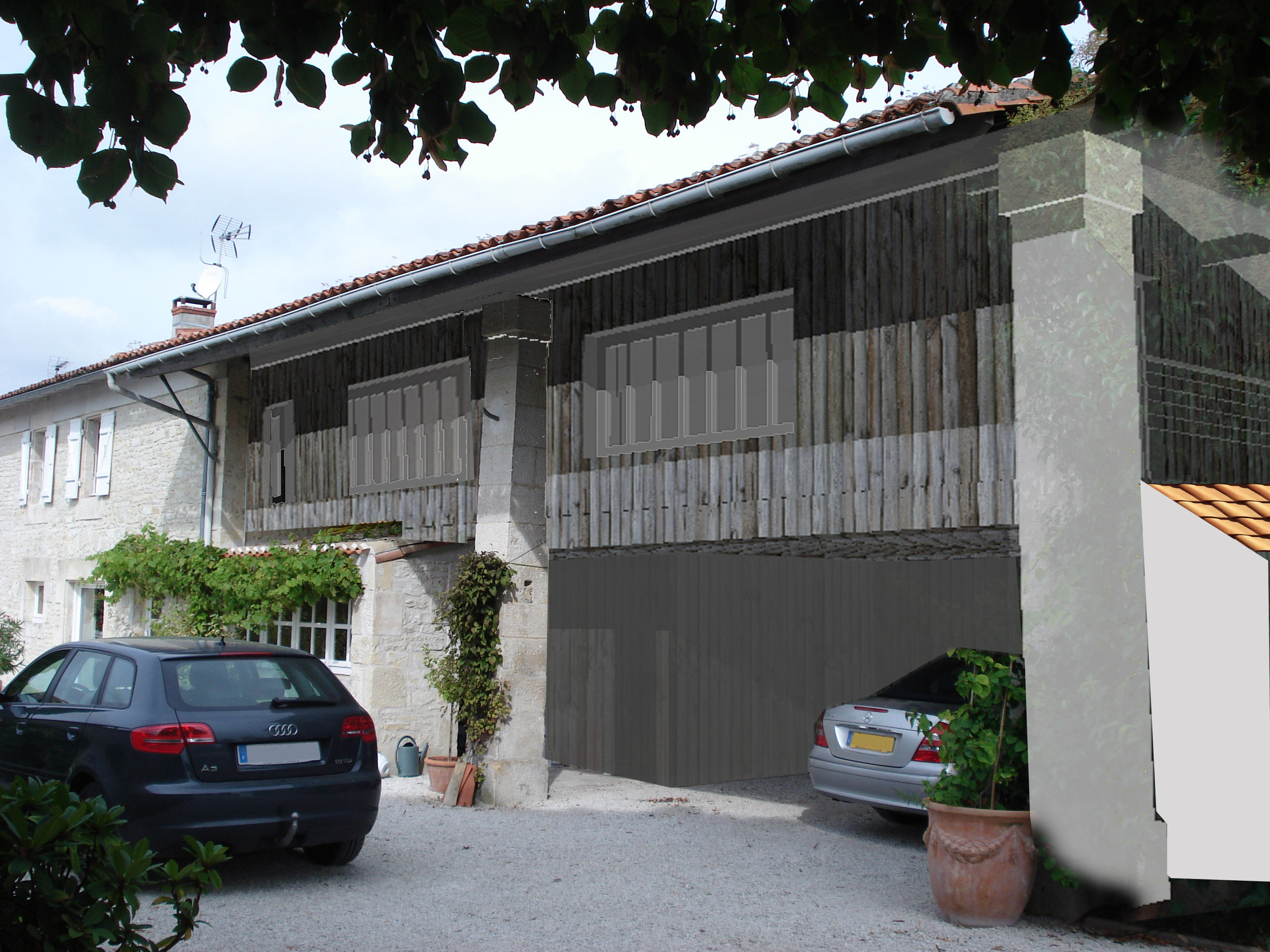 Le choix du mode de construction en ossature bois et bardage bois s’est fait pour ne pas créer un pastiche d’architecture ancienne. Le bois donne un coté grange volontairement recherché.