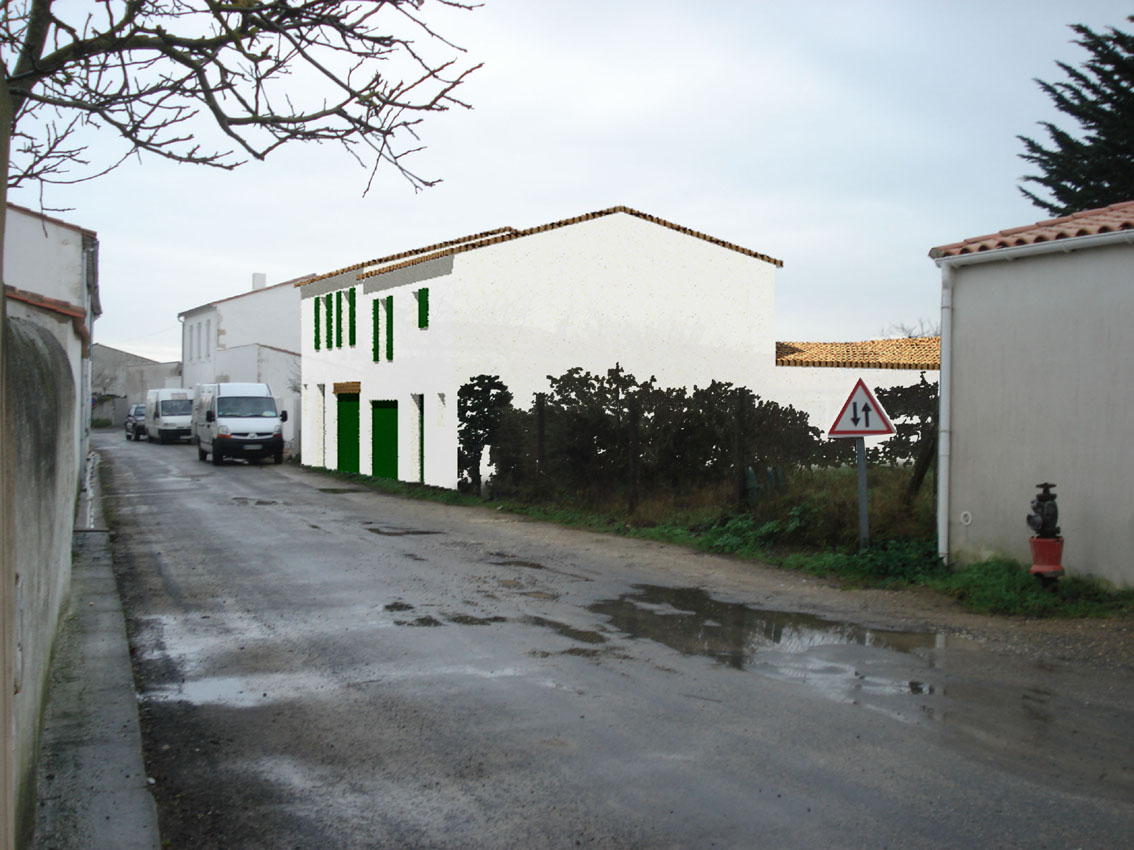 La Commune, Maître d’Ouvrage, souhaitait réutiliser un des bâtiments communaux en sa possession afin de créer un local commercial. En premier lieu le Conseil voulait restructurer les volumes en bordure de rue, ces derniers n’offrant que peu de surface, le choix s’est porté sur le bâtiment en fond de parcelle (qui d’ailleurs se serait retrouvé enclavé dans la première idée).