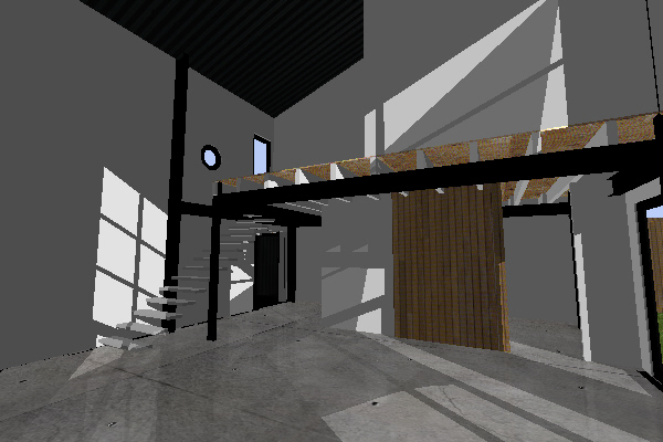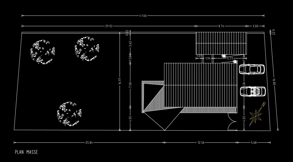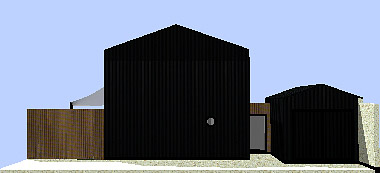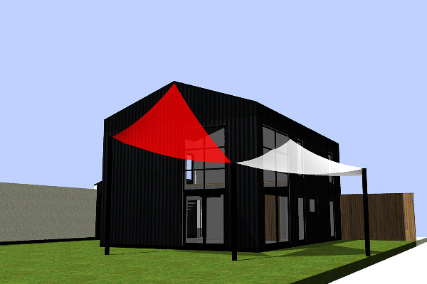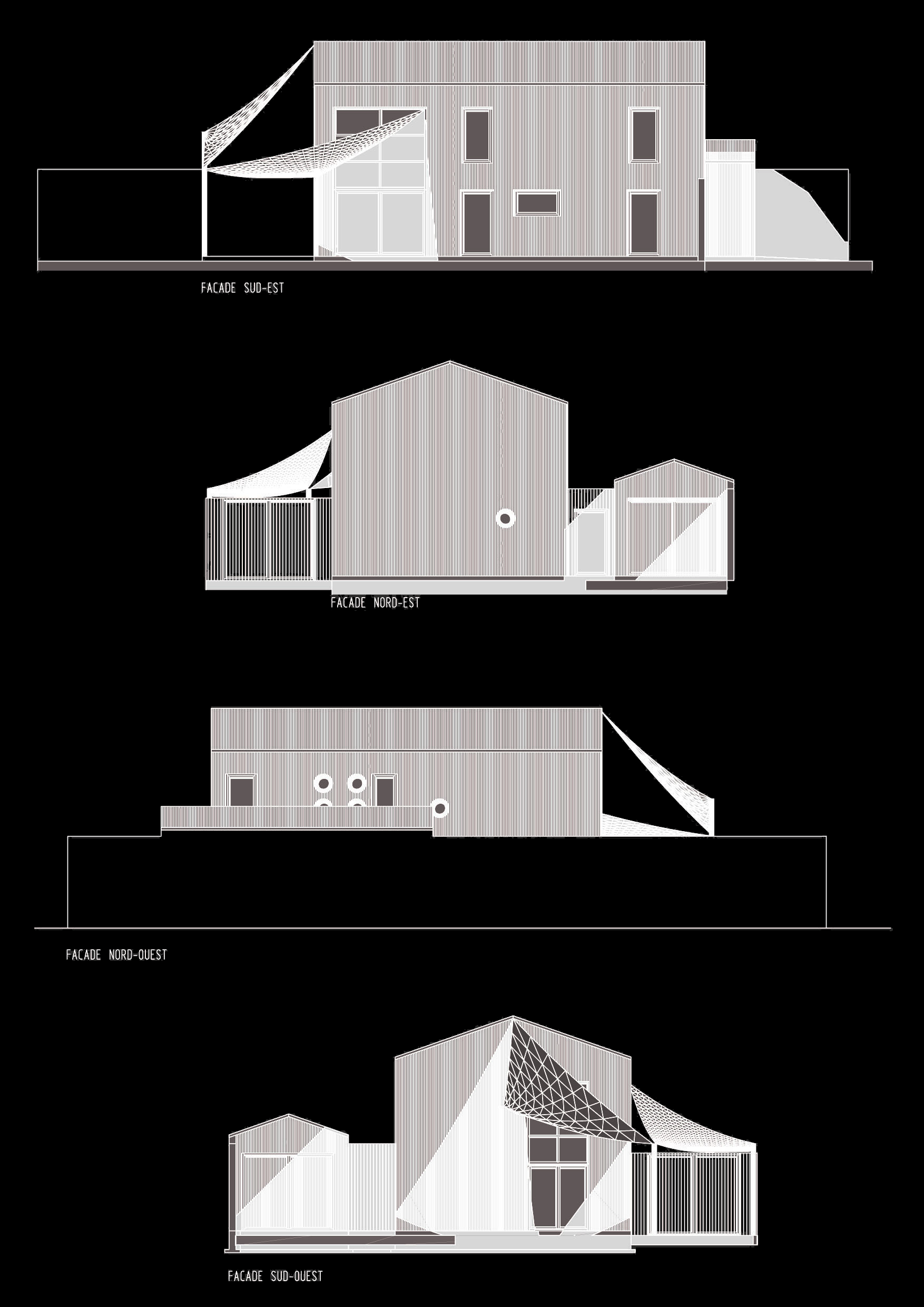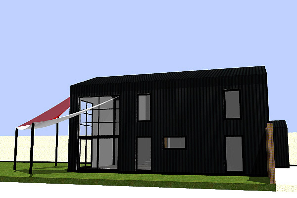 Cette maison est en ossature métallique, avec bardage métallique noir, s’inspirant des cabanes de pêcheurs. Ce choix de structure vient du fait que le projet doit être parasismique, et cette construction serait moins onéreuse qu’un bâtiment en maçonnerie traditionnelle, de plus cela vient ajouter un coté original.