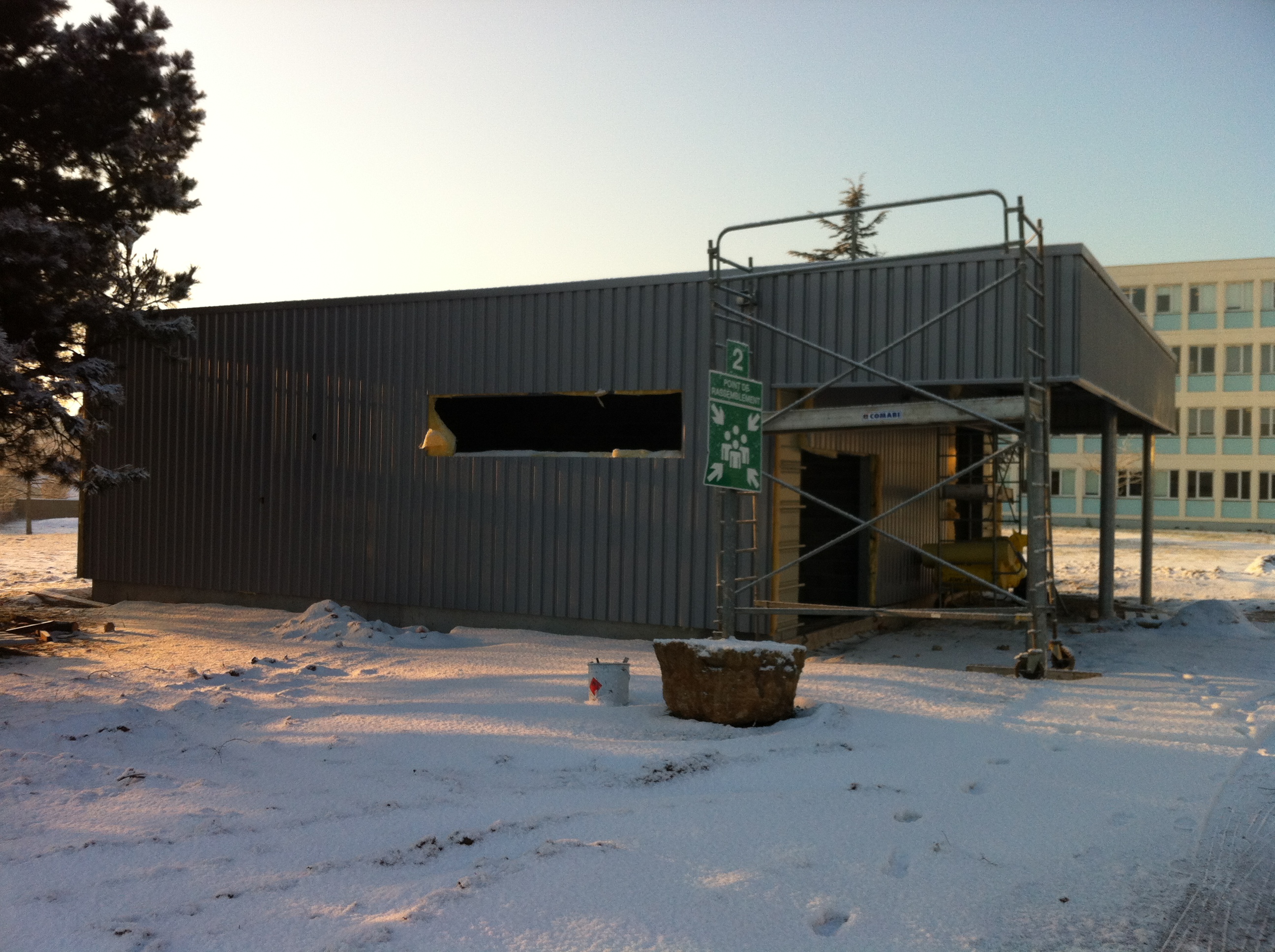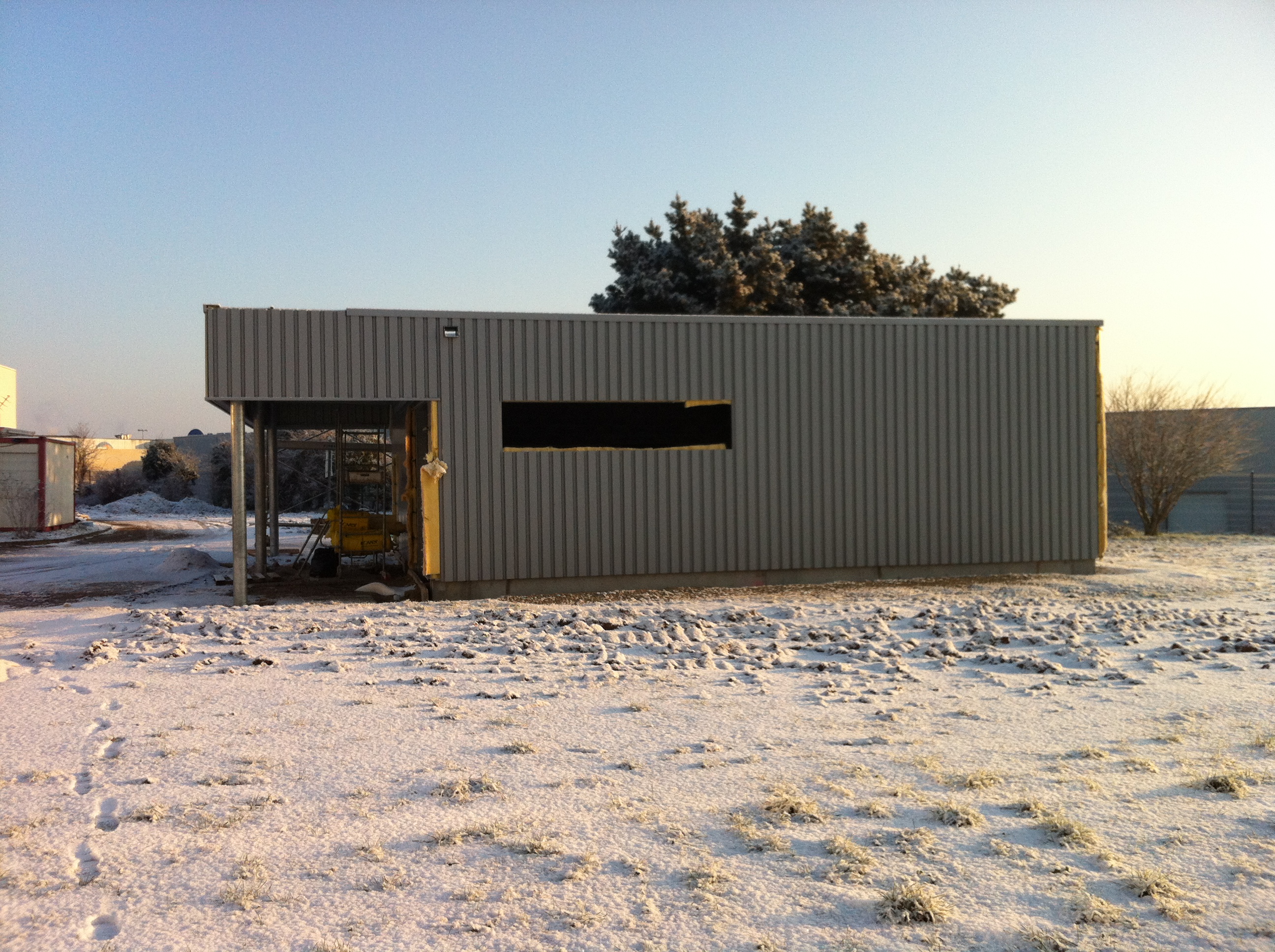 La construction a été réalisée en structure métallique, avec bardage métallique.
